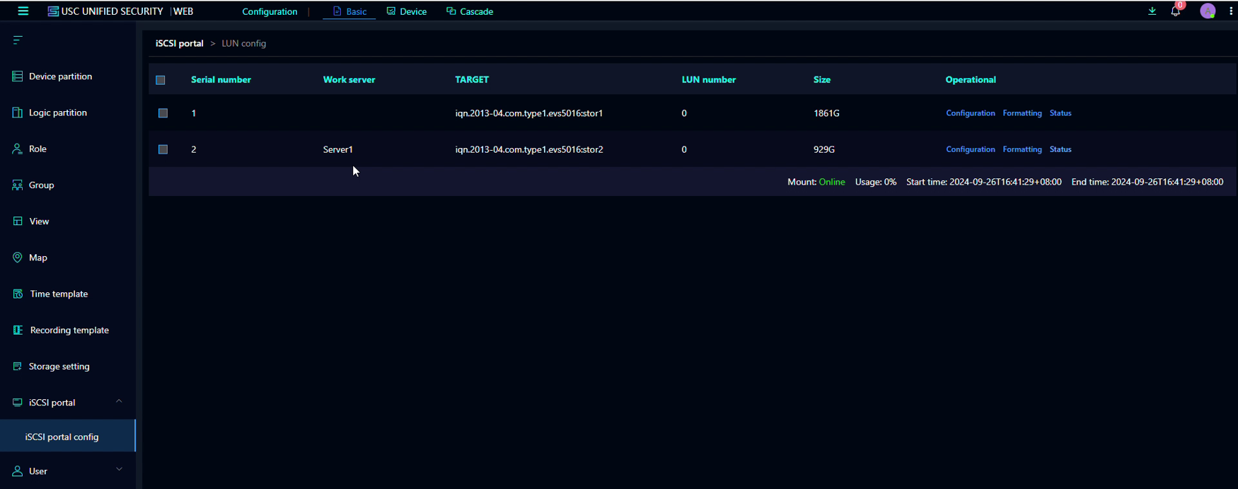 USC has built-in iSCSI protocol, which can directly read and write iSCSI lun block devices, and supports iSCSI target auto-discovery, greatly reducing configuration time. Video data is written in streaming mode. The working node can be configured as a hot standby mode, which can achieve smooth switching of the device management node to the hot standby node, thus achieving redundant backup of device management video. Switching servers without needing to back up video reduces system downtime to a very small range.